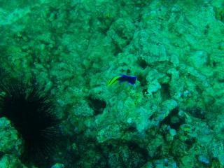 後ろにはいっぱいのミレッドシードバタフライフィッシュ(固有種)