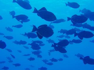 安全停止の時にサヨリの群れが水面を泳いで行きました。