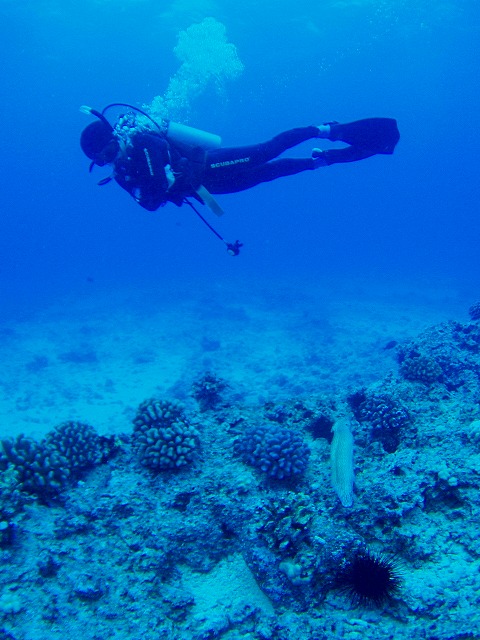 ダイバーはご夫婦。坊やはボートの上で待っていました。