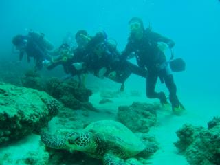 いつも来て下さる名古屋港水族館の亀はかせとその友人の方と3人で潜りました。
