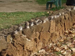 近くのトーマススクエアー(公園)の噴水外郭の縁に並んでひなたぼっこをしていた鳩たちです。違う日に行ったらまた、同じ所でひなたぼっこをしていました。井戸端会議じゃなく噴水端会議です。