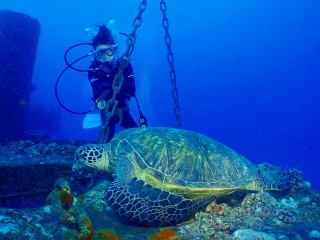 GREEN TURTLE / オアウミガメ と ヘラヤガラ / PACIFIC TRUMPETFISH?