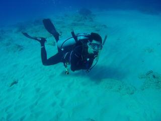 今日は青い海で潜れてよかったね!