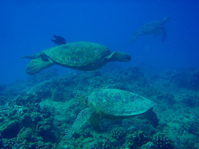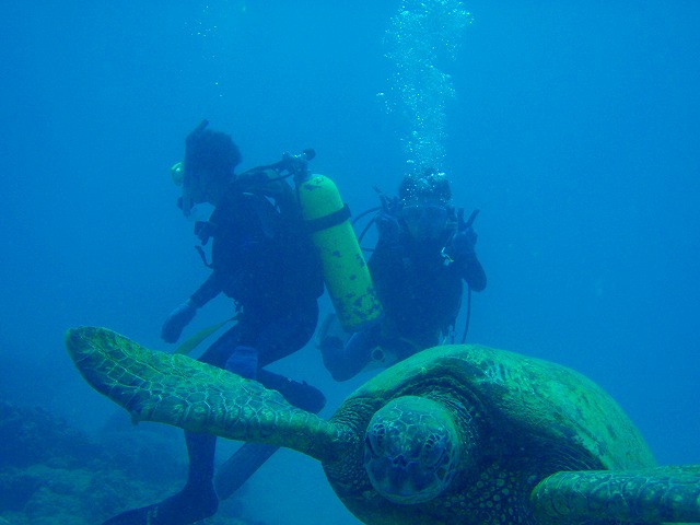 1本目に比べると透明度は落ちたけれどここもカメ天国でした。